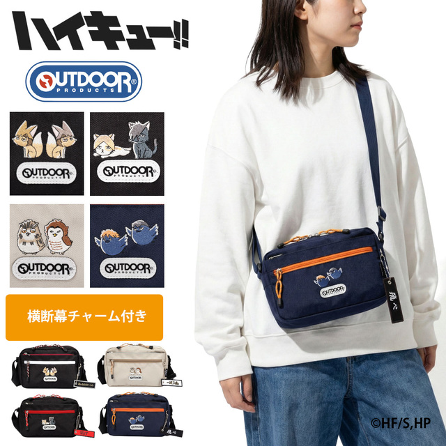 OUTDOOR PRODUCTS コラボ ショルダーバッグ 烏野 音駒 稲荷崎 梟谷 公式 限定 アウトドアプロダクツ メンズ レディース 斜めがけ 小さめ 軽量 A5 ミニショルダー 黒 カバン 旅行 推し活 プレゼント ギフト お散歩