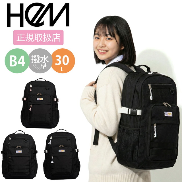 HeM ヘム リュック 通学 30L 大容量 女子 男子 中学生 高校生 モル デイパック リュックサック スクールバッグ 撥水 A4 B4 PC収納 タブレット 軽量 多機能 ポケット 黒 可愛い 推し活