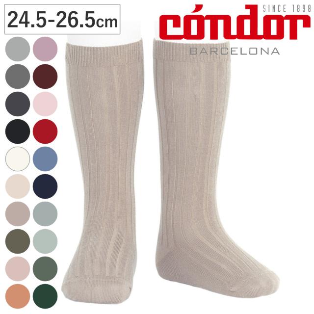 靴下 condor レディース 24.5〜26.5cm ベーシック リブ ニーハイソックス ( コンドル ソックス くつ下 くつした コットン 大人 丈夫 ハイソックス リブソックス スペイン製 手触り 滑らか 無地 女性 おしゃれ ギフト )