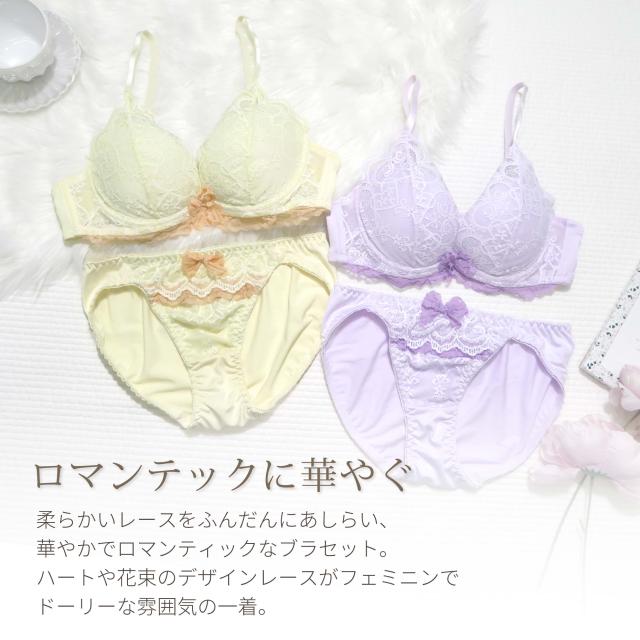 ハートと花束のデザインレースが可愛い♪ドーリーでロマンティックなブラセット。