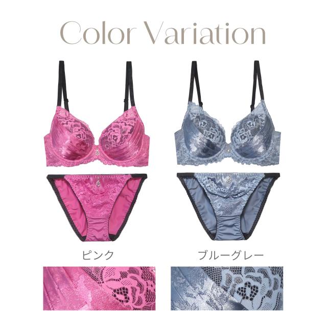 ブラ ショーツ A70-F75 サテン セクシー 谷間 ハミ肉防止 ピンク ブルーグレー (J-5332)[メール便不可]【ブラジャー ブラセット 下着 レディース Eカップ Fカップ 大きいサイズ 上下セット】