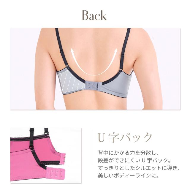 ブラジャーはU字バック×脇高設計で、脇からはみ出るお肉をキャッチ。