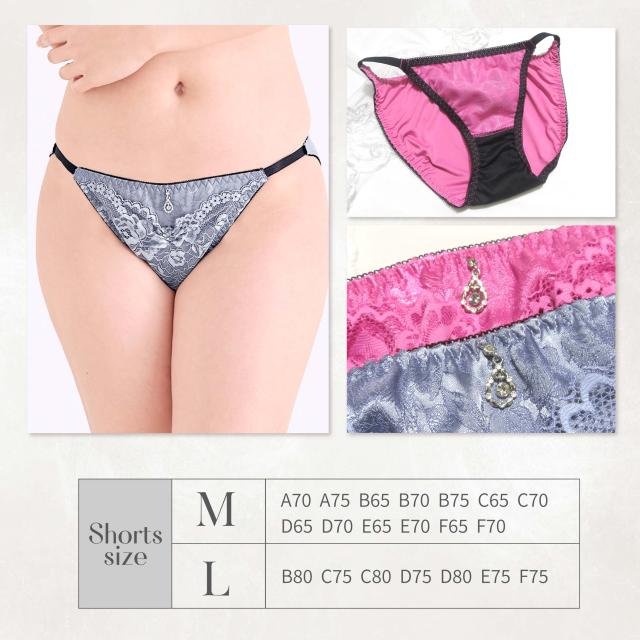 艶やかなジャカードサテンが大人の魅力を引き出し、魅惑的な雰囲気のブラセット。すっきりとしたボディシルエットをメイクする脇高シリーズ。 セットのショーツはフルバックタイプ。