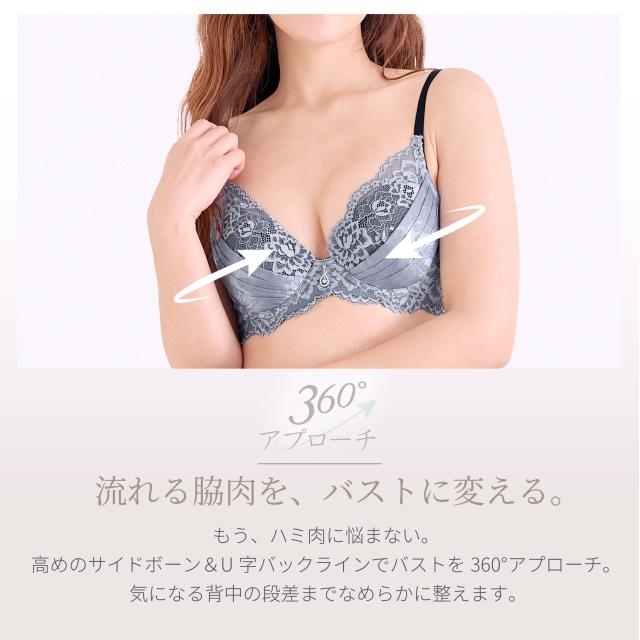 ブラジャーはU字バック×脇高設計で、脇からはみ出るお肉をキャッチ。