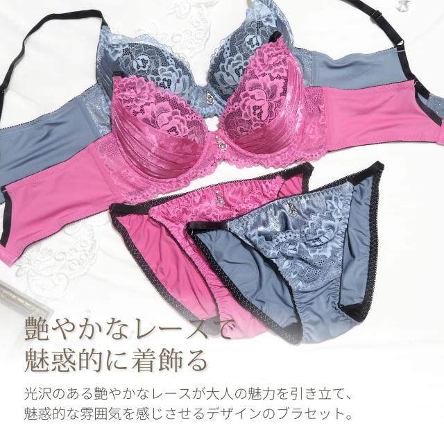 商品名(商品番号):ブラ ショーツ G70-I95 サテン セクシー 谷間 ハミ肉防止 ピンク ブルーグレー (j-5332-ef2)