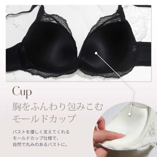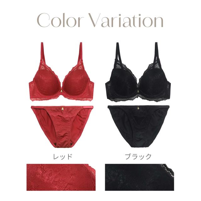 小花レースが上品で大人の色気を纏うブラセット。胸元を透かすレースがセクシーで魅惑的な印象に。カップは自然な谷間をメイクするナチュ盛シリーズ。ショーツはフルバックタイプ。