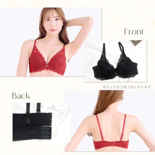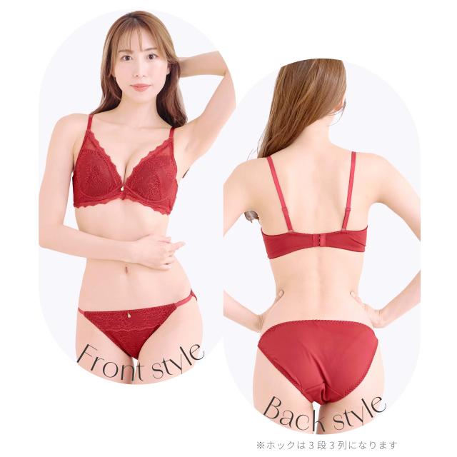 小花レースが上品で大人の色気を纏うブラセット。胸元を透かすレースがセクシーで魅惑的な印象に。カップは自然な谷間をメイクするナチュ盛シリーズ。ショーツはフルバックタイプ。