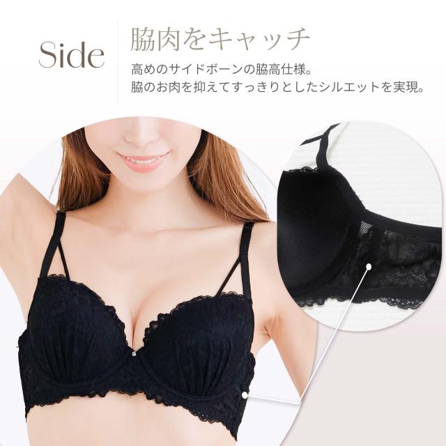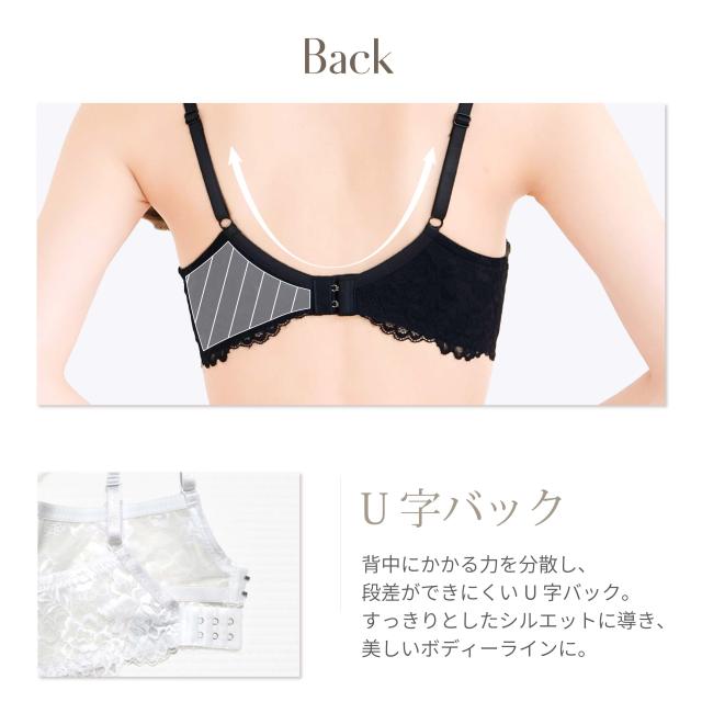 ブラジャーはU字バック×脇高設計で、脇からはみ出るお肉をキャッチ。