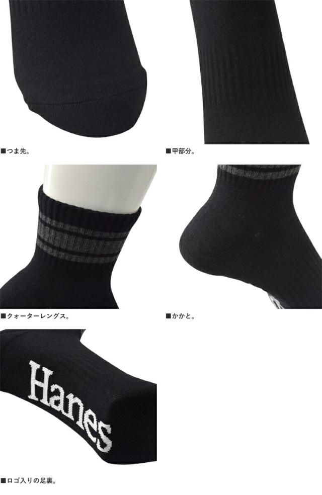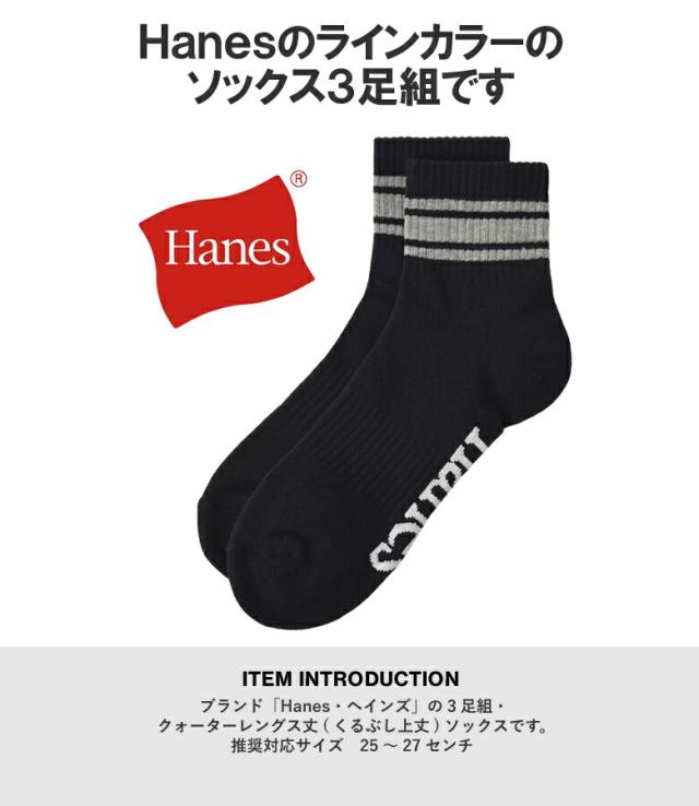 靴下 ソックス メンズ Hanes ヘインズ 3足組 3P クォーターレングス ライン 白 黒 HMSCC201 正規品 セール【Z1S】【パケ2】
