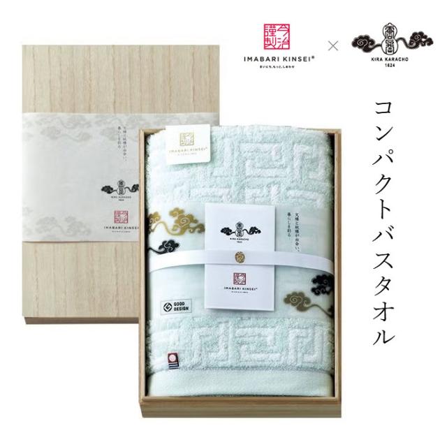 今治謹製 雲母唐長(KIRA KARACHO)タオル 木箱入り コンパクトバスタオル 1枚 グリーン (角つなぎ) 今治製 〈KK89050〉 今治タオル ギフト 内祝い お祝い