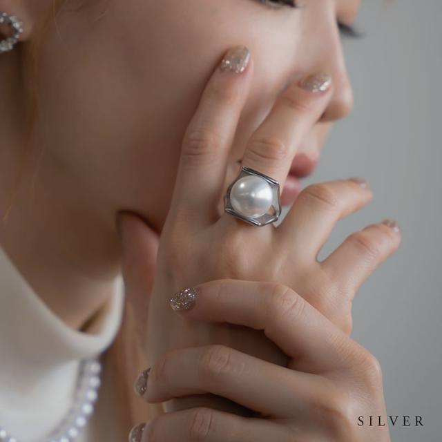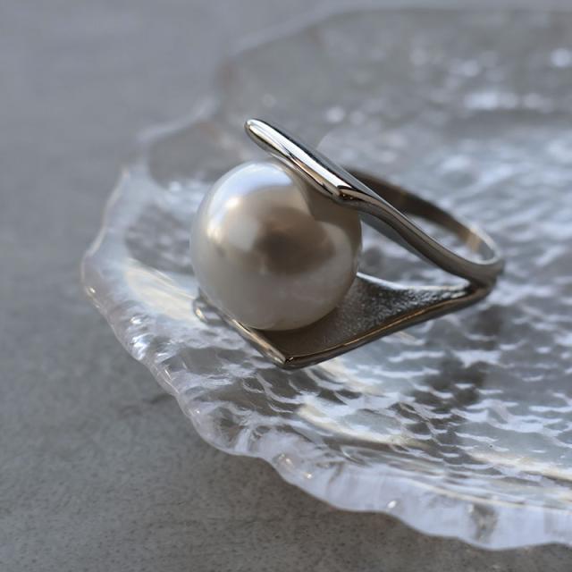 リング 指輪 金属アレルギー対応 ステンレス製 レディース Pパール ニュアンス 大ぶり ゴールド シルバー 14号 16号 デイリー カジュアル シンプル 結婚式 オケージョン プチプラ 高見え