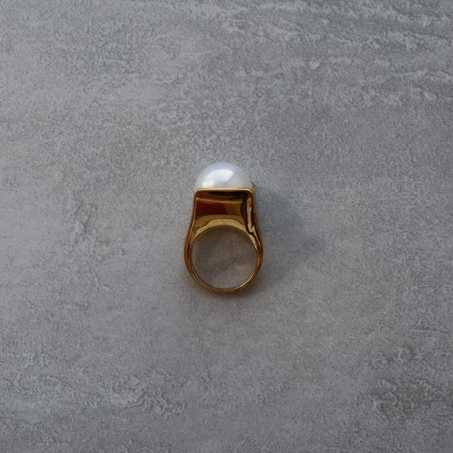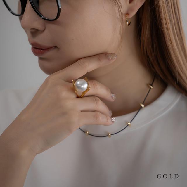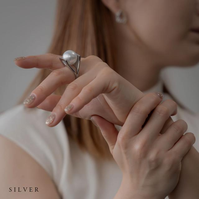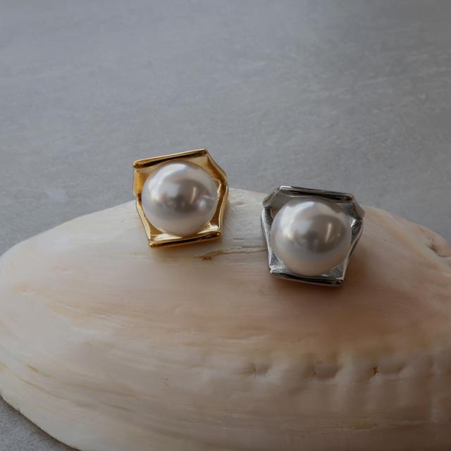 大粒のパールを1粒セットした、シンプルながらも個性が光るデザイン。