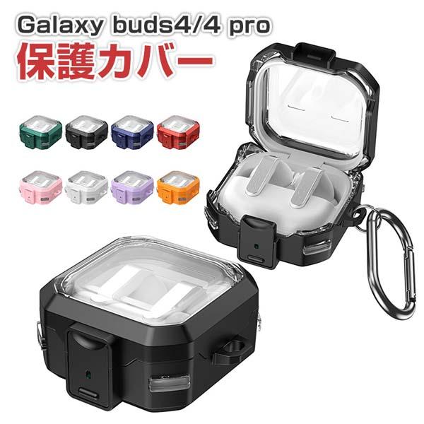 Galaxy Buds4 / Buds4 Pro 対応 上蓋透明ケース PC+TPU イヤホンケース 保護カバー ロック付き カラビナ付き 多色展開 耐衝撃 キズ防止 軽量 コンパクト 装着充電対応 Samsung ギャラクシー バッズ4 ケース