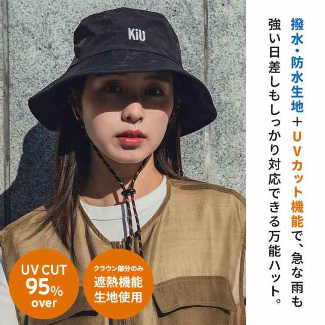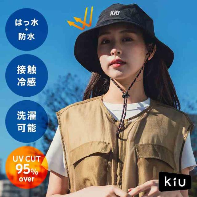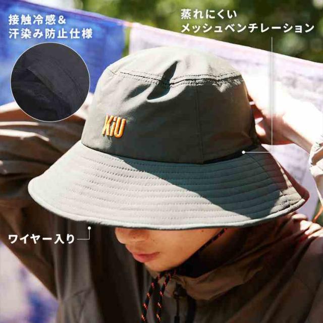 サファリハット KiU キウ K518 レディース メンズ UVカット 春 夏 帽子 つば広 撥水 防水 接触冷感 遮熱 手洗い 日よけ 紫外線対策 バケットハット レインハット メッシュ 顎紐付き 自転車 通勤 キャンプ アウトドア フェス おしゃれ ロゴ ブラック ブルー カーキ 男女兼用