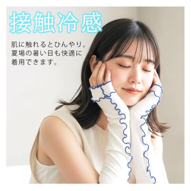 アームカバー レディース uv 冷感 ショート 指先まで 手の甲 指穴 肘まで メロウ レース フリル かわいい おしゃれ ゆったり 細見え 大きいサイズ メロウアームカバー 日焼け対策 upf50+ 涼しい 腕カバー 手袋 黒 白 青 グレー