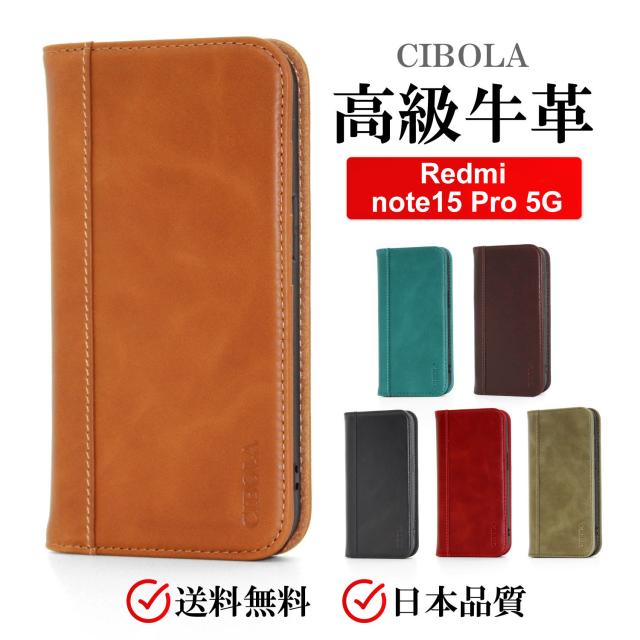 日本メーカーCIBOLA発売の高級牛革・本革 Redmi Note 15 Pro 5G 手帳型スマホケース。耐衝撃、スタンド機能、カード収納で便利、本革のエイジングが楽しめる逸品。
