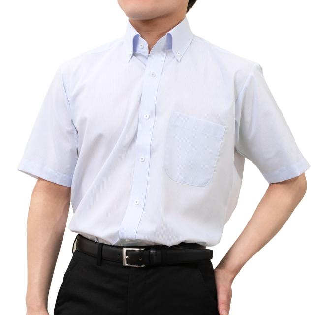 ワイシャツ メンズ クールビズ 半袖 形態安定 接触冷感 ボタンダウン ブルーストライプ【GIN525-350】