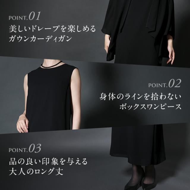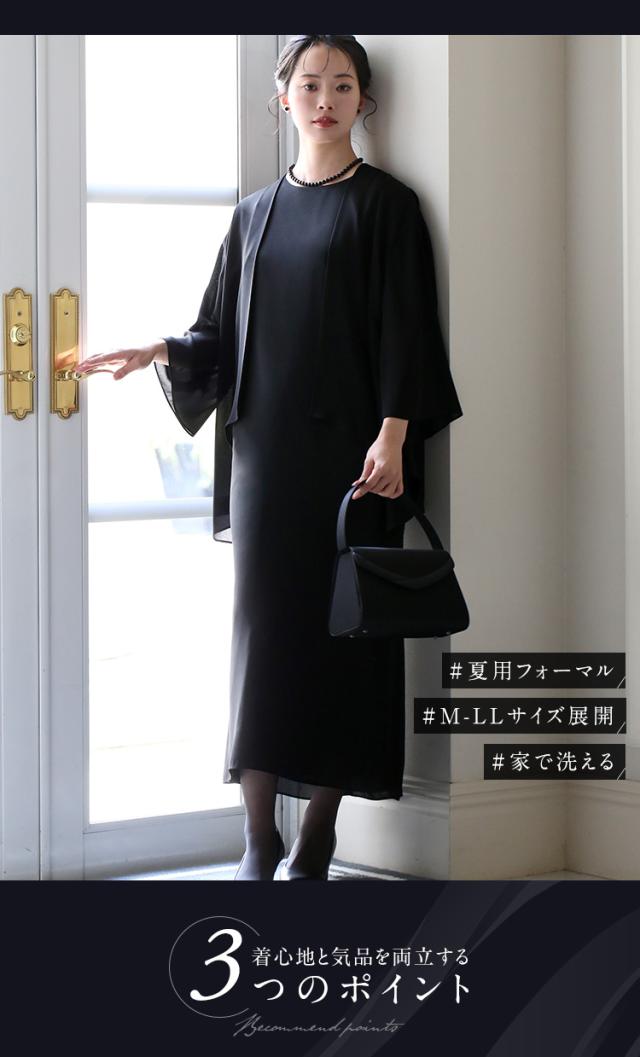 【21%OFF】 ブラックフォーマル 夏用 喪服 礼服 レディース ロング丈 カーディガン ワンピース 洗える 大きいサイズ 黒 スーツ フォーマル ブラック 結婚式 七五三 法事 入園式 入学式 卒園式 卒業式 30代 40代 50代 60代 M L LL NGR-SS7327 送料無料