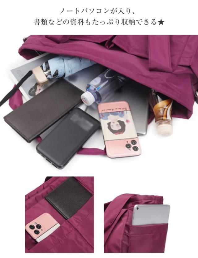 ショルダーバッグ トートバッグ 鞄 レディース 2WAY 多ポケット 仕切り サイドポケット 軽量 斜めがけ 肩掛け 大容量 撥水 シンプル ファッション 通勤 通学