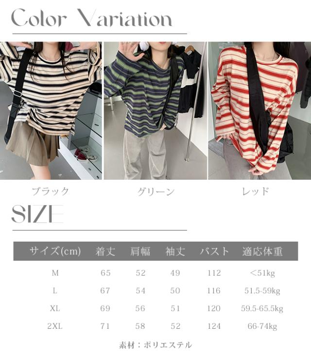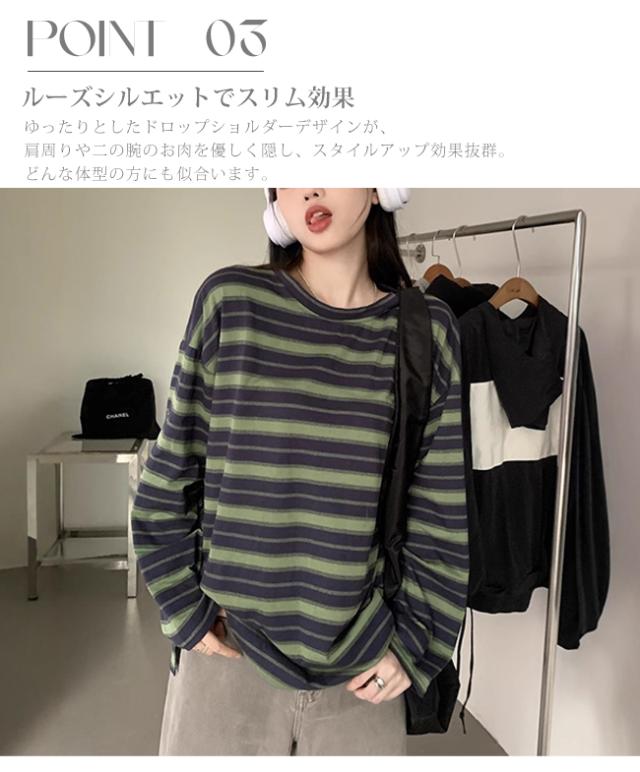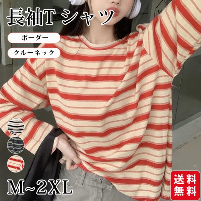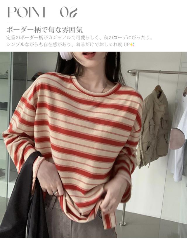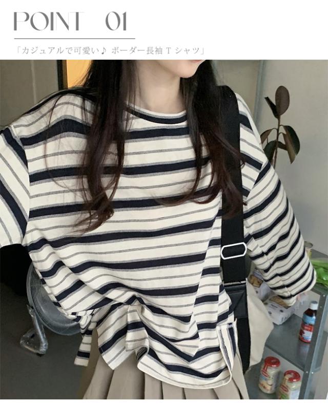 「カジュアルで可愛い♪ ボーダー長袖 T シャツ」