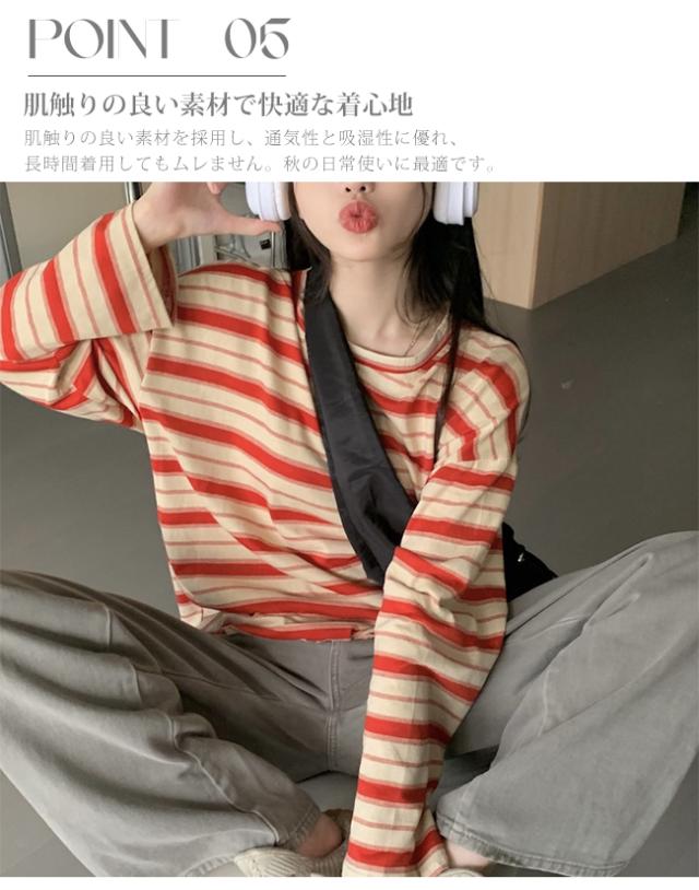定番のボーダー柄がカジュアルで可愛らしく、秋のコーデにぴったり。シンプルながらも存在感があり、着るだけでおしゃれ度 UP?