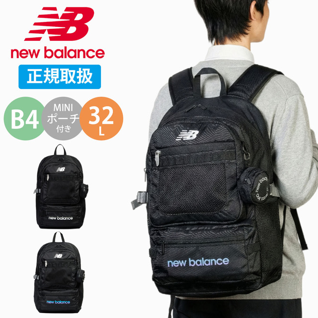 ニューバランス リュック 通学 32L 女子 男子 大容量 new balance リュックサック バックパック スクバ スクールバッグ 撥水 軽量 PC収納 A4 B4 リフレクター 反射材 中学生 高校生 部活 サブバッグ デイパック ポーチ付き