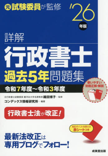 [書籍]/詳解行政書士過去5年問題集 ’26年版/織田博子/監修 コンデックス情報研究所/編著/NEOBK-3197922