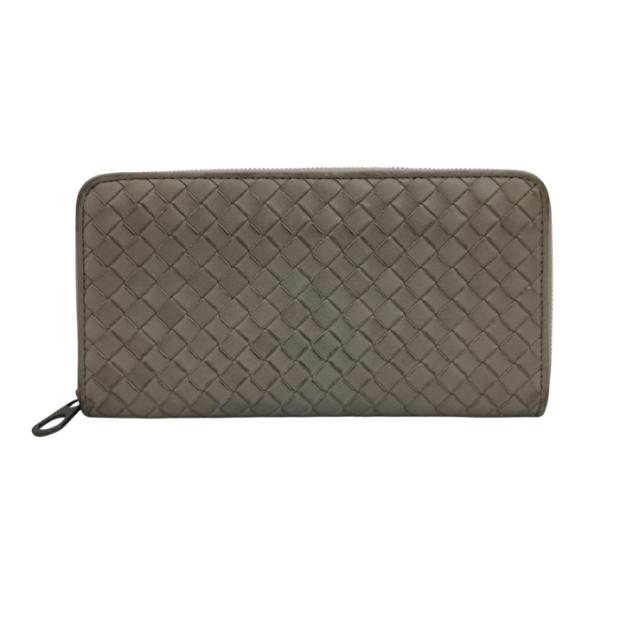 BOTTEGA VENETA ボッテガヴェネタ 長財布 イントレチャート 510643 グレー系 レザー ユニセックス ラウンドファスナー 美品 【本物保証】