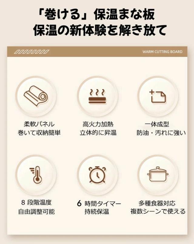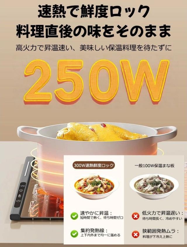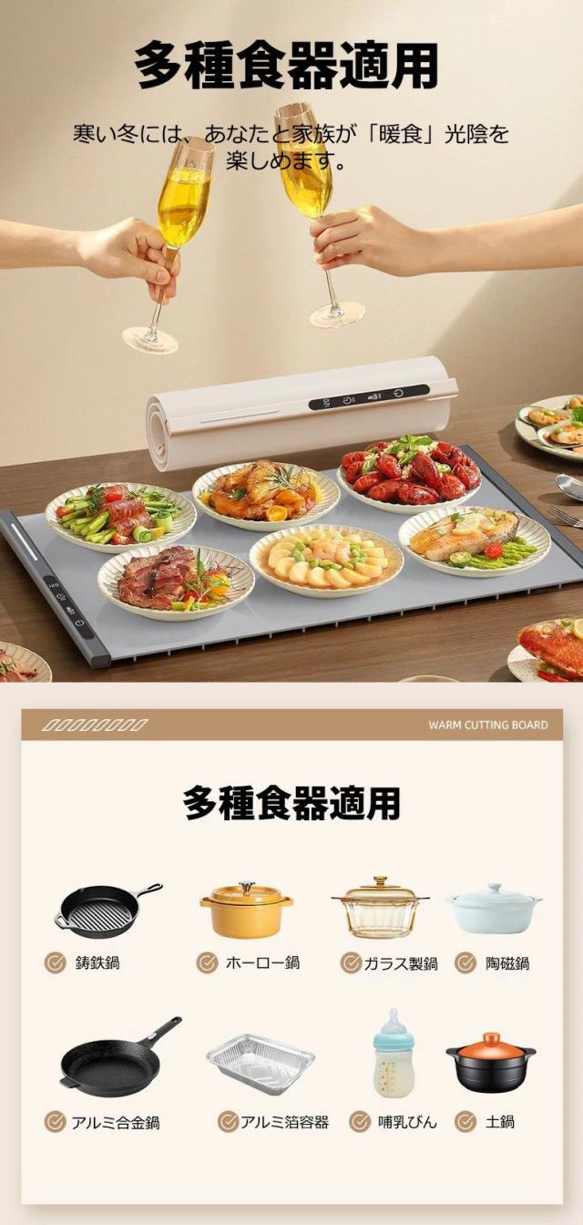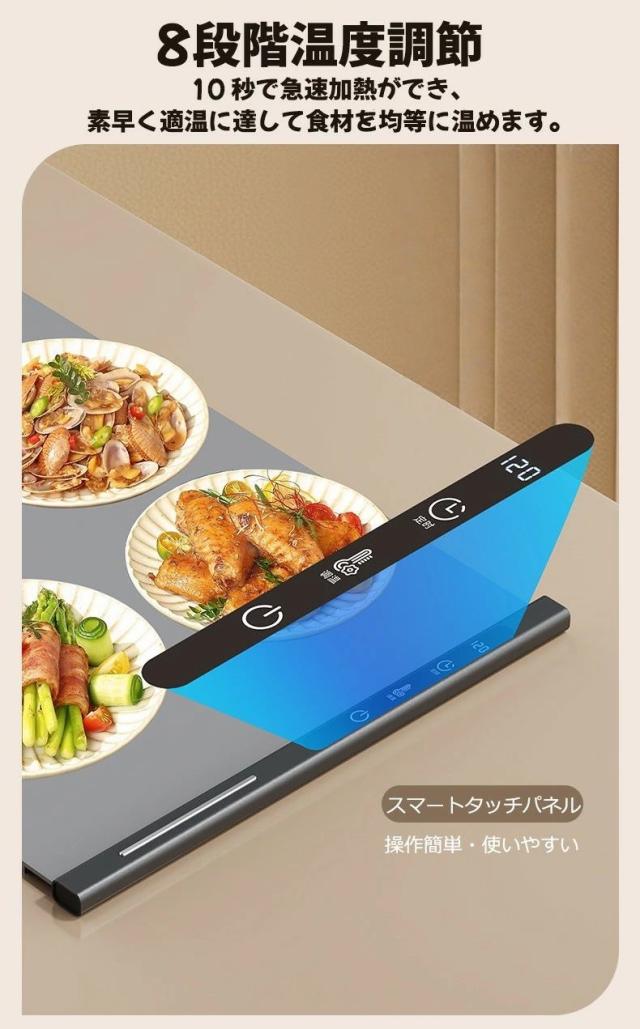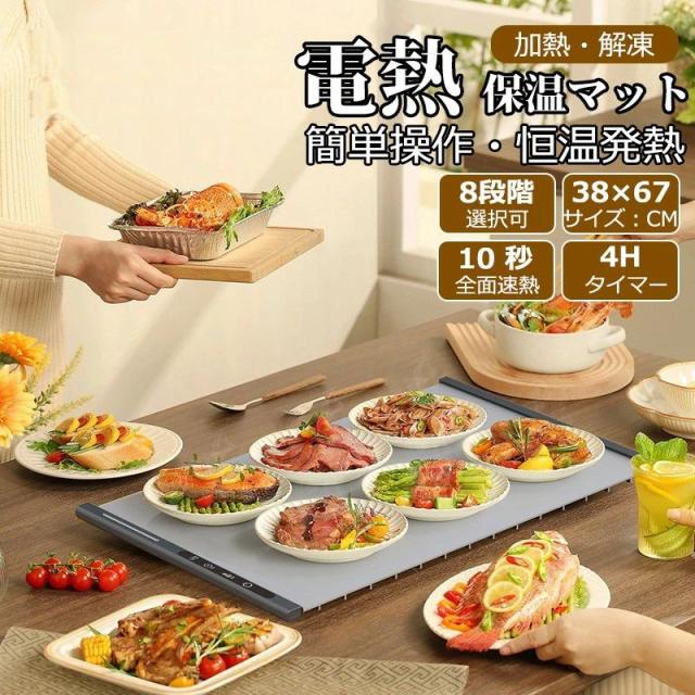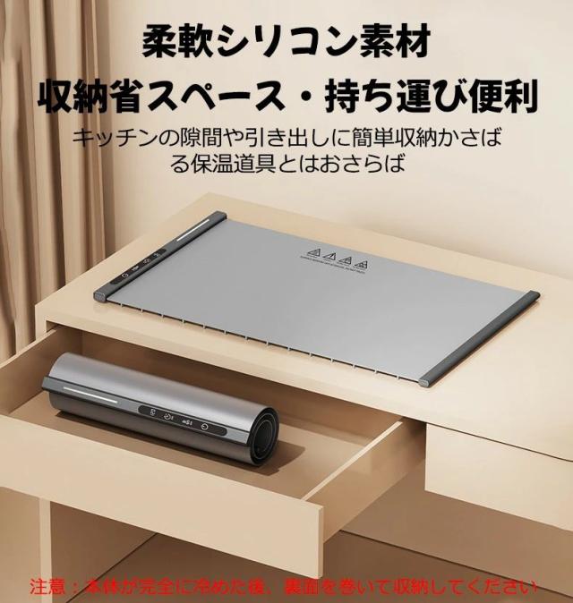 保温プレート 卓上 シリコン製 折りたたみ式 フードウォーマー 電気保温トレイ 8段階温度調節 6時間タイマー 撥水加工 滑り止め お手入れ簡単 収納便利