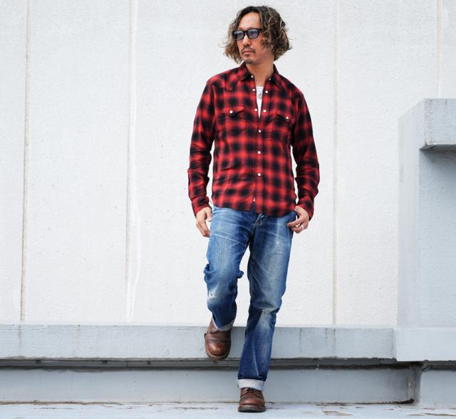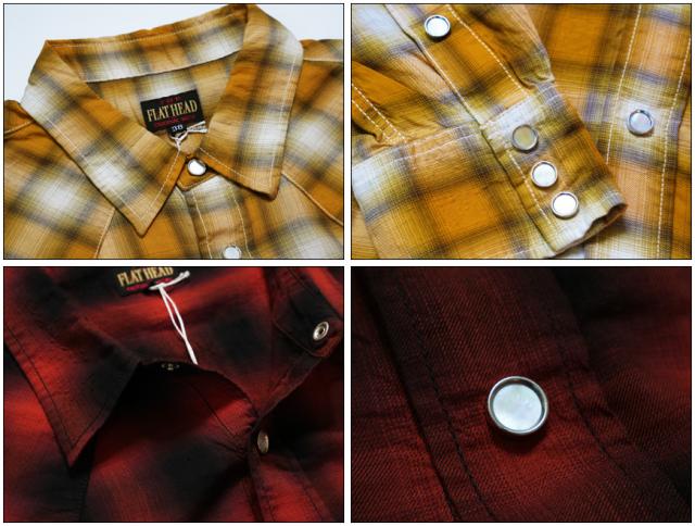 ■フラットヘッド THE FLAT HEAD 長袖 コットンレーヨンオンブレーチェックウエスタンシャツ FN-SCW-021L