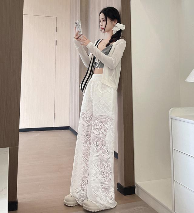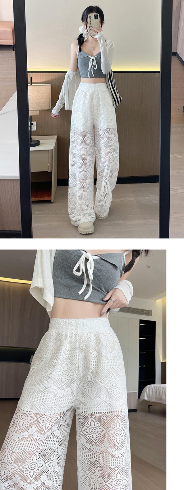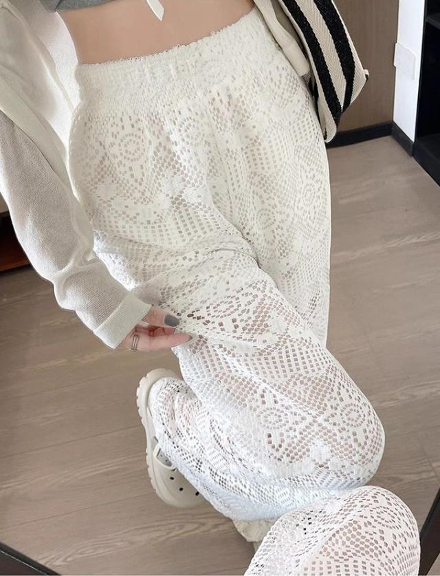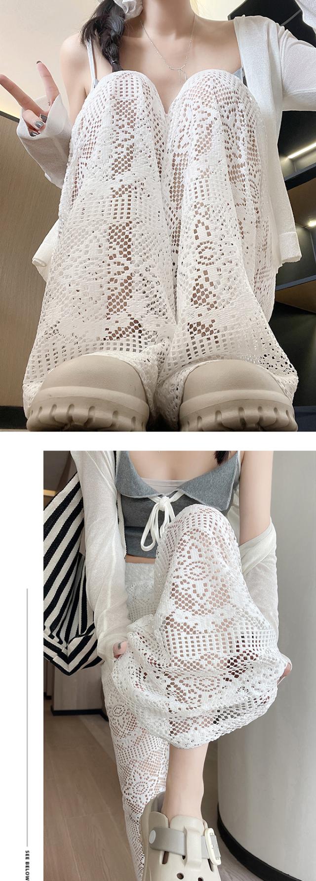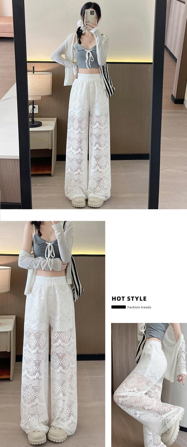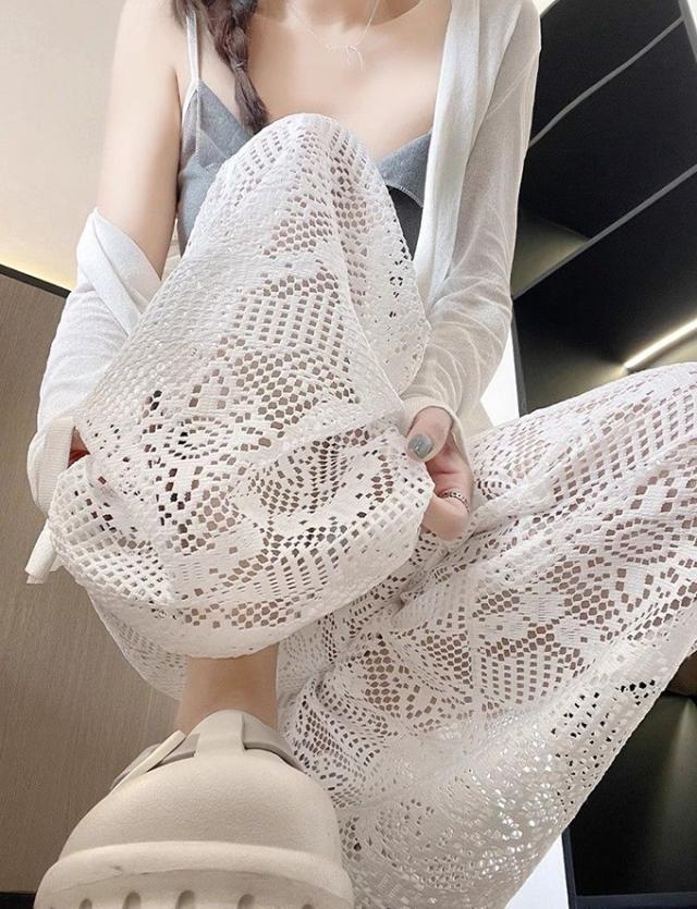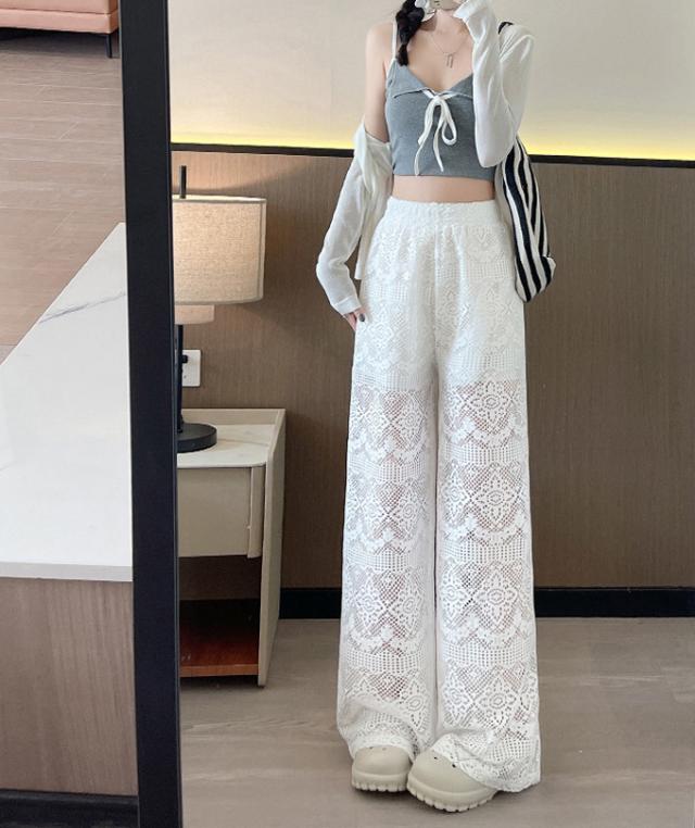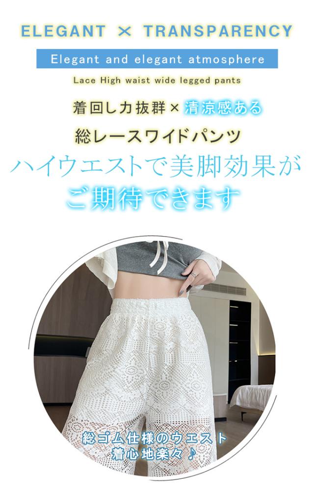 透かし編みレースで春夏の気分を取り入れられるワイドパンツ。