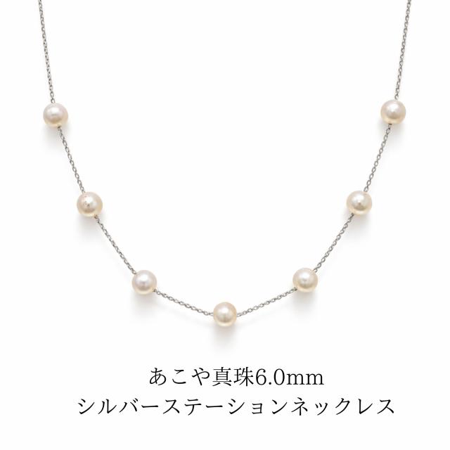 あこや真珠 ネックレス 6mm 7粒 本真珠 パール ステーションネックレス シルバー レディース フォーマル 普段使い 45cm アジャスター付