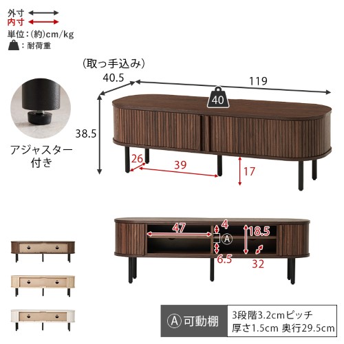 | サイズ(cm) | (約)幅119×奥行40.5×高さ38.5cm |