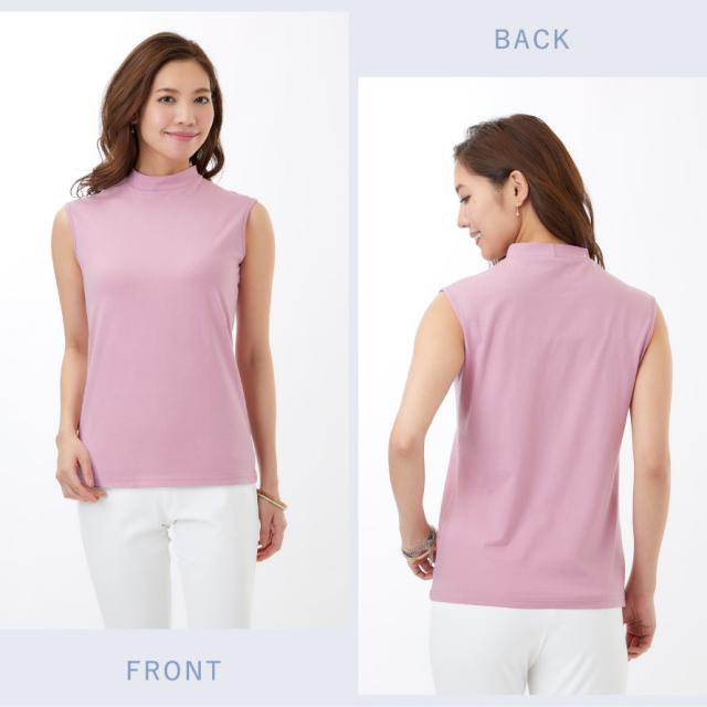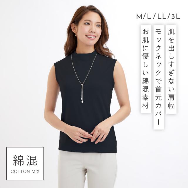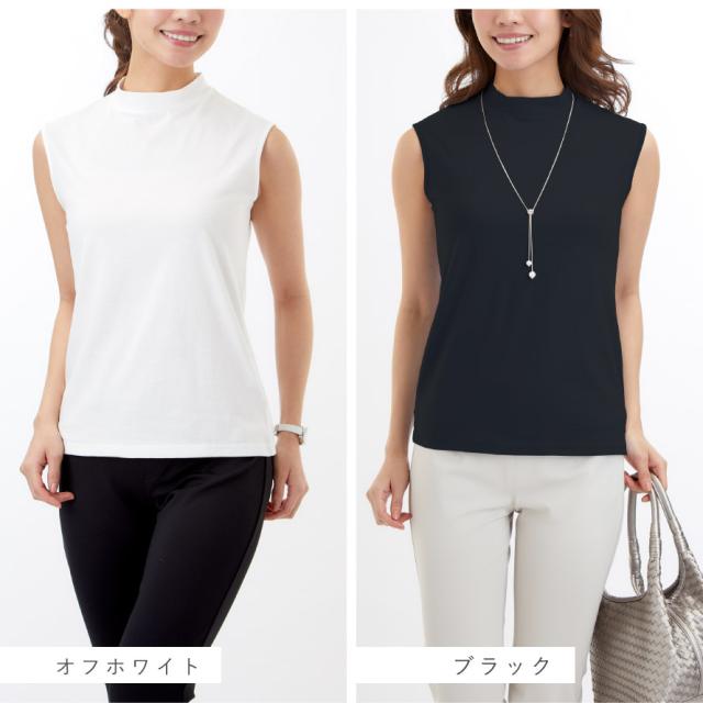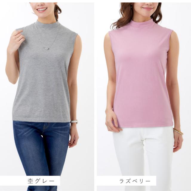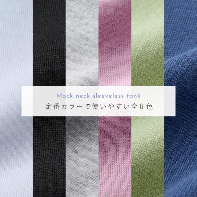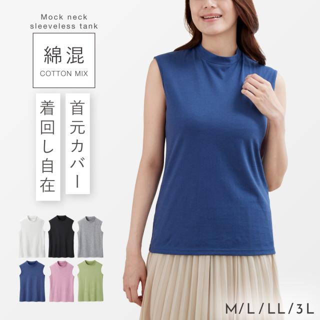 タンクトップ レディース 綿100% モックネック スリーブレス インナー ハイネック 首元カバー 重ね着 50代 60代 70代 ミセス M L LL 3L 無地 スリーブレスタンク ホワイト ブルー グレー ピンク グリーン ブラック メール便対応