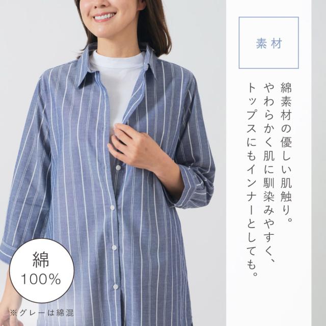 素材は、綿100%(杢グレーのみ、ポリエステル65、綿35%)のやさしい肌ざわり。汗ばむ季節にも心地よく、毎日気軽に着やすいのがうれしいポイントです。やわらかく肌になじみやすいので、インナーとしても快適にお使いいただけます。