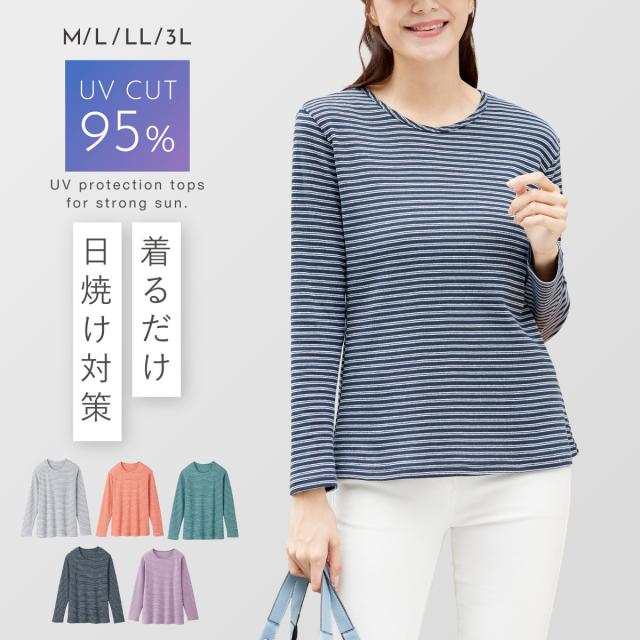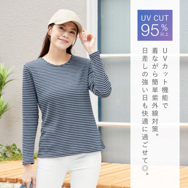 ボーダー カットソー,ボーダー トップス レディース,ボーダー ロンt,クルーネック,ボーダー,細め,カットソー,トップス,ロンt,uv,uvカット,紫外線カット,紫外線,日焼け,日焼け対策,日焼け防止,対策,防止,日よけ,日除け,春,夏,春夏,体型カバー,細見え,着痩せ,すっきり,お腹,腰回り,カバー,レディース,女性,ミセス,ミセスファッション,シニア,高齢者,お年寄り,50代,60代,70代,おしゃれ,お洒落,オシャレ,フェミニン,上品,きれいめ,エレガント,高見え,スタイリッシュ,M,L,LL,3L,大きいサイズ,ゆったり,大きめ,ホワイト,白,ブルー,青,グリーン,緑,ネイビ,紺,レッド,赤,ラベンダー,パープル,紫,