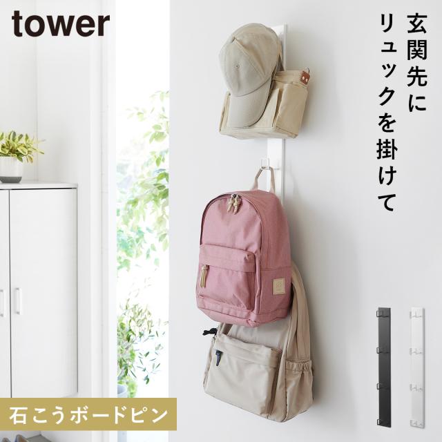 リュック ハンガー,ランドセル ハンガー,バッグハンガー,ハンガー,リュック,リュックサック,バッグ,カバン,ハンドバッグ,帽子,ランドセル,ハンガー,フック,引っ掛け,引っかけ,ひっかけ,掛ける,かける,掛ける収納,石膏ボード,石こうボード,ピン,石膏ボードピン,壁,壁面,壁付け,浮かす,浮かせる,浮かせる収納,空中収納,玄関,玄関インテリア,tower,タワー,TOWER,タワーシリーズ,ホワイト,白,ブラック,黒,モノトーン,山崎実業,山崎,yamazaki,山実,シンプル,シンプルデザイン,シンプルインテリア,ミニマリスト,断捨離,スタイリッシュ,モダン,北欧,北欧テイスト,おしゃれ,お洒落,オシャレ,インテリア,雑貨,部屋,賃貸,マンション,アパート,トータルコーディネート,整理整頓,片付け,片付く,生活感が出ない,すっきり,一人暮らし,二人暮らし,ファミリー,同棲,新生活,新居,引っ越し,