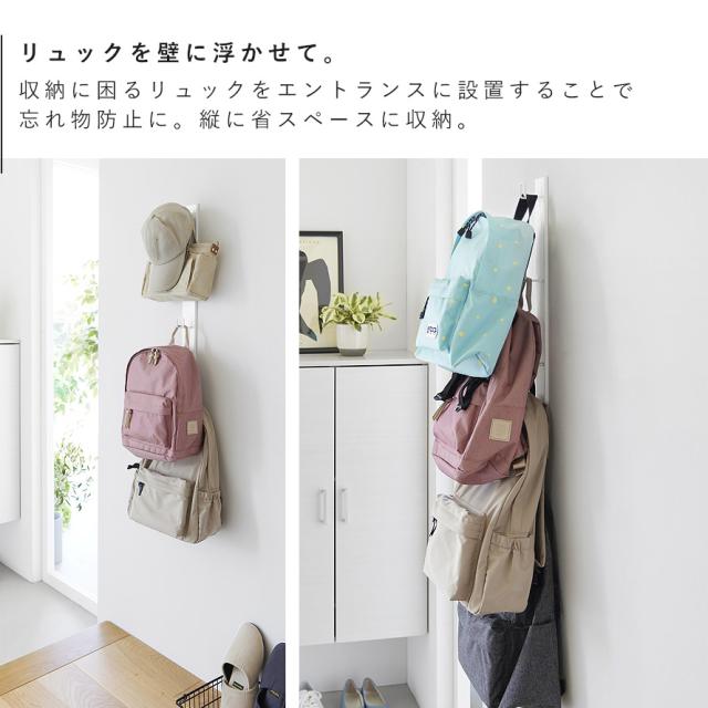 壁付けリュックハンガー タワー 縦型 山崎実業 tower リュック ランドセル ハンガー バッグハンガー おしゃれ モノトーン ホワイト ブラック 10579 10580