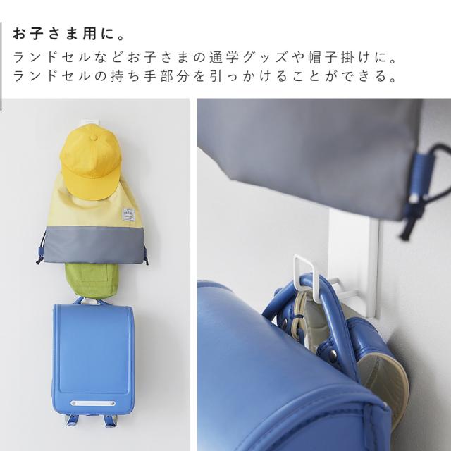 ハンドバッグや帽子、ランドセルの持ち手部分を引っ掛けて、通学グッズをまとめて収納するのもおすすめです。