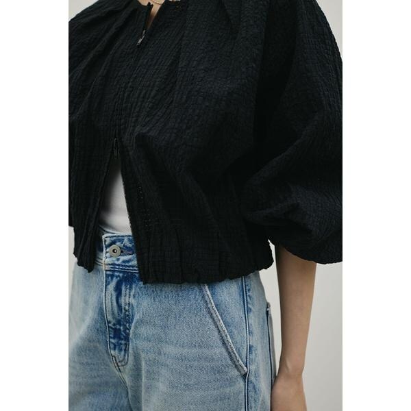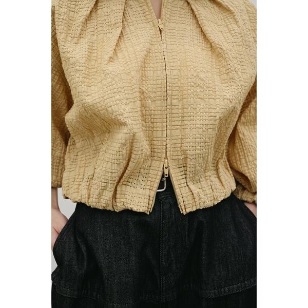 モデル身長163cm(FREEサイズ着用)コットン素材の柔らかいレースで仕上げた、上品で軽やかなブルゾン。ふんわりとしたボリュームスリーブが女性らしいシルエットを作りつつ、透け感のあるレースで抜け感をプラスします。フロントは逆開ファスナー仕様で、羽織るだけでニュアンスのある着こなしが完成。ジップの開閉で印象を変えられるので、カジュアルにもきれいめにもスタイリング可能です。デニムやパンツスタイルはもちろん、ワンピースやスカートに合わせて甘辛MIXコーデにもおすすめ。ストレッチなし、透け感ややあり。【お手入れ方法】手洗い可