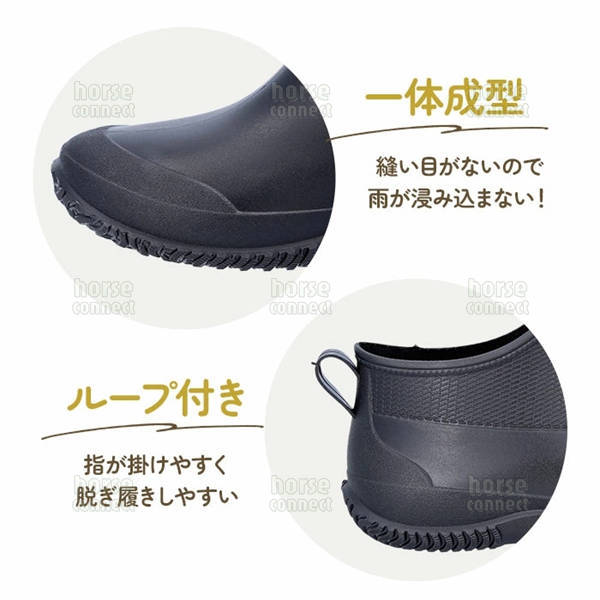 ・スポンと履けるショート丈タイプ。履き口にはループ付き。