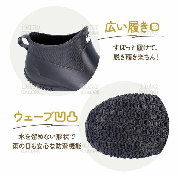・靴底は凹凸のある形状で、濡れた場所でも滑りにくい。