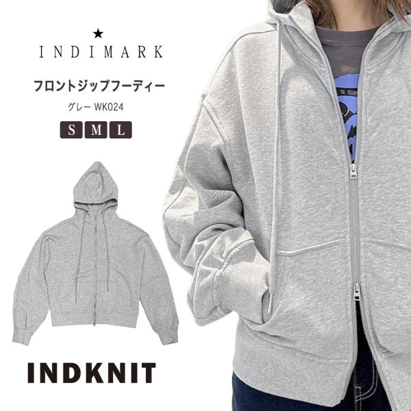 INDIMARK INDKNIT デニムレディース おしゃれ ブランド かわいい フロントジップフーディー グレー WK024【お取り寄せ】