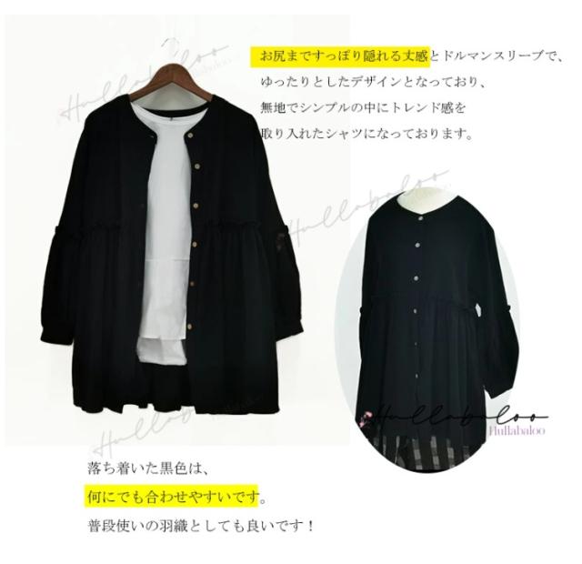 ブラウス シャツ レディース トップス ロング チュニック 二の腕カバー 半袖 無地 きれいめ レイヤード ゆったり 大きいサイズ 体型カバー お尻が隠れる