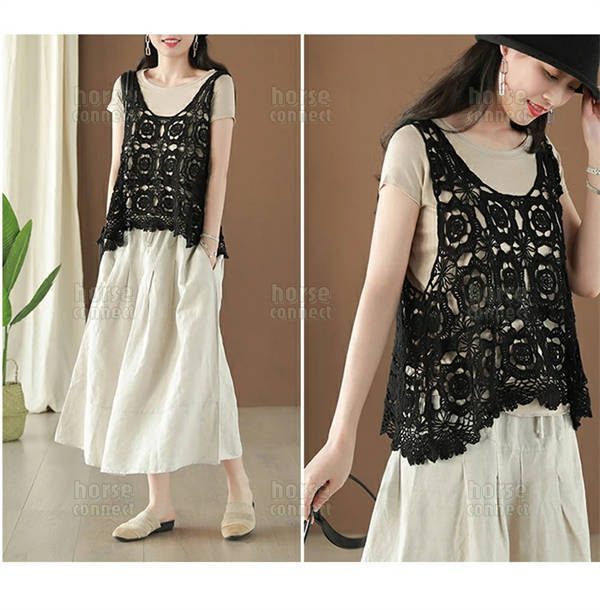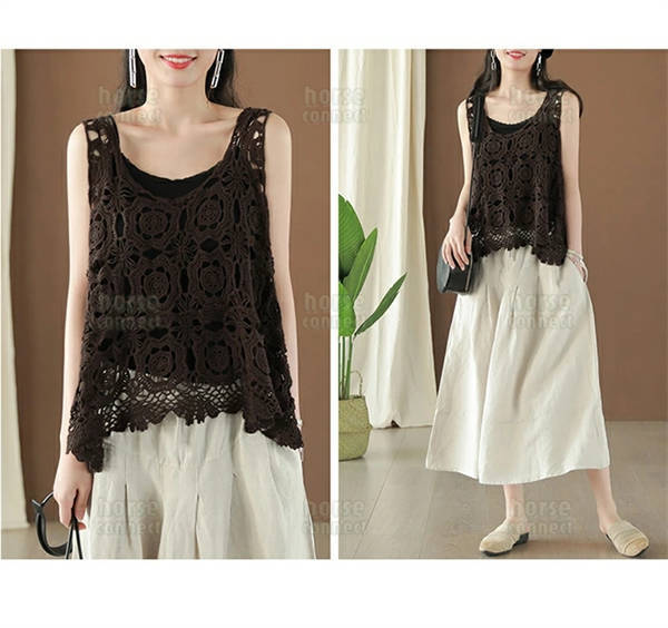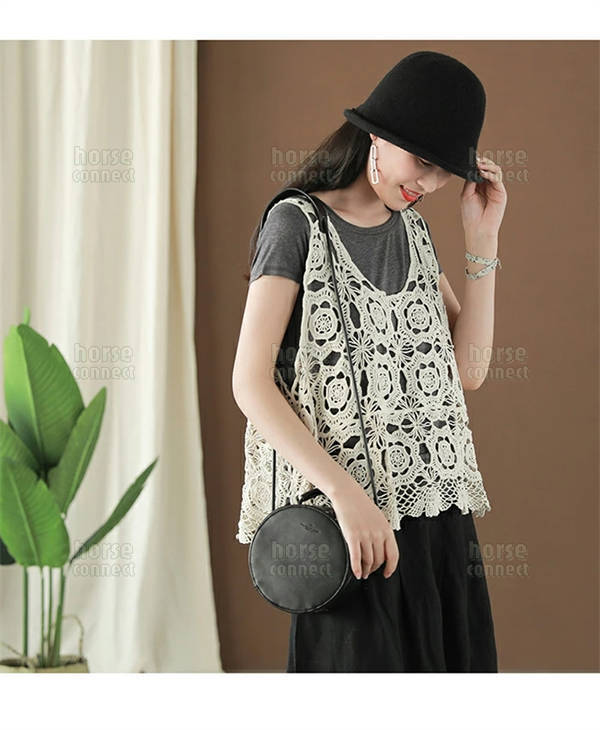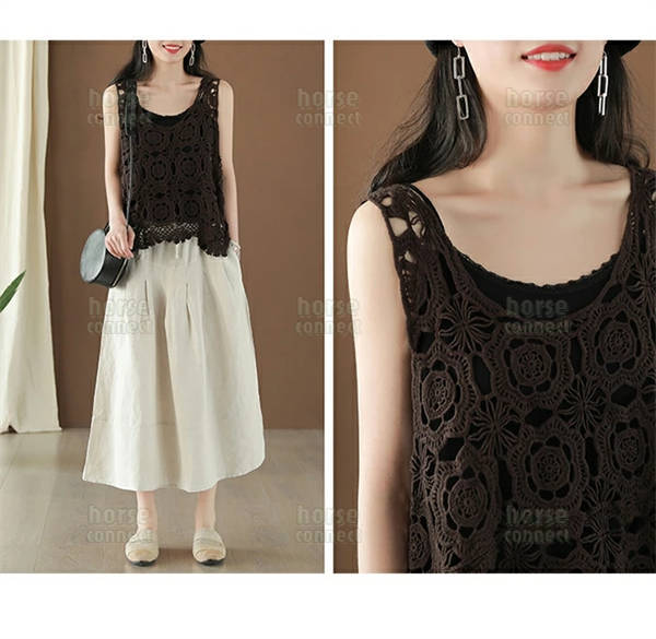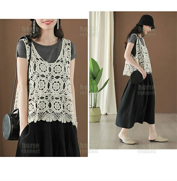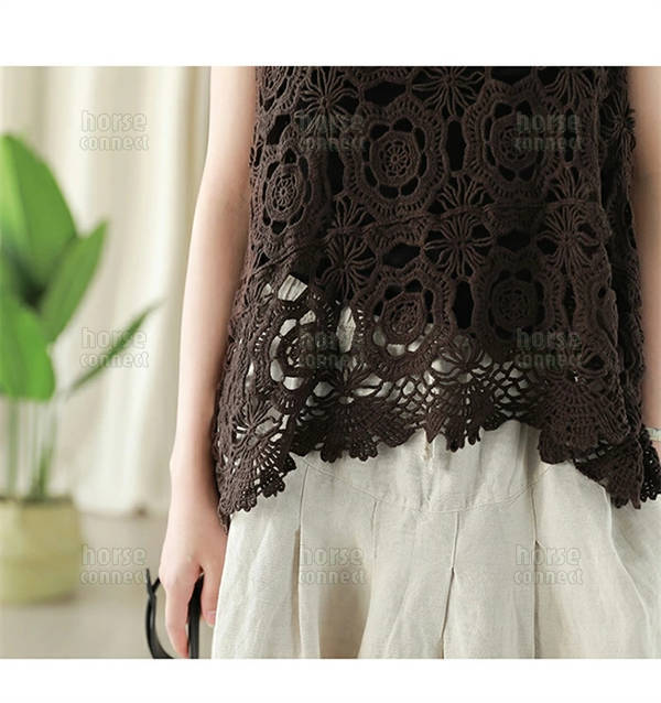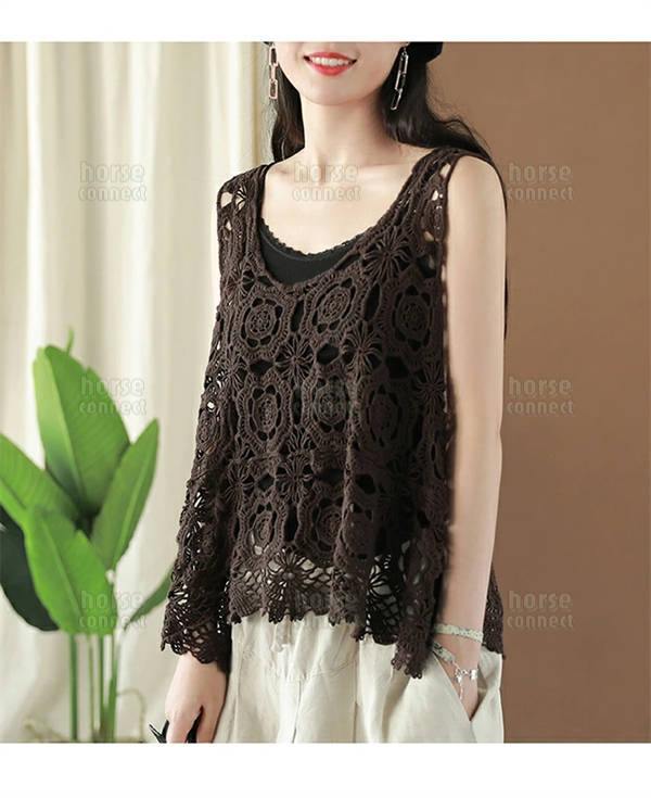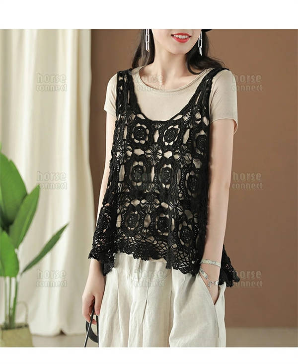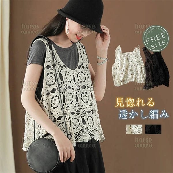 【二点目半額】透かし編み カーディガン 綿 ベスト レディース 春 夏 クロシェ編み トップス 涼やか カジュアル レイヤード ニットベスト かぎ編み ベスト ノースリーブ サマーニット おしゃれ きれいめ 透け 大人 可愛い ゆったり オフホワイト 黒 ブラウン