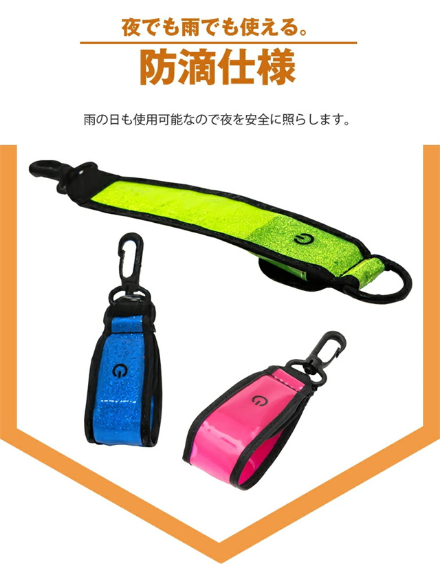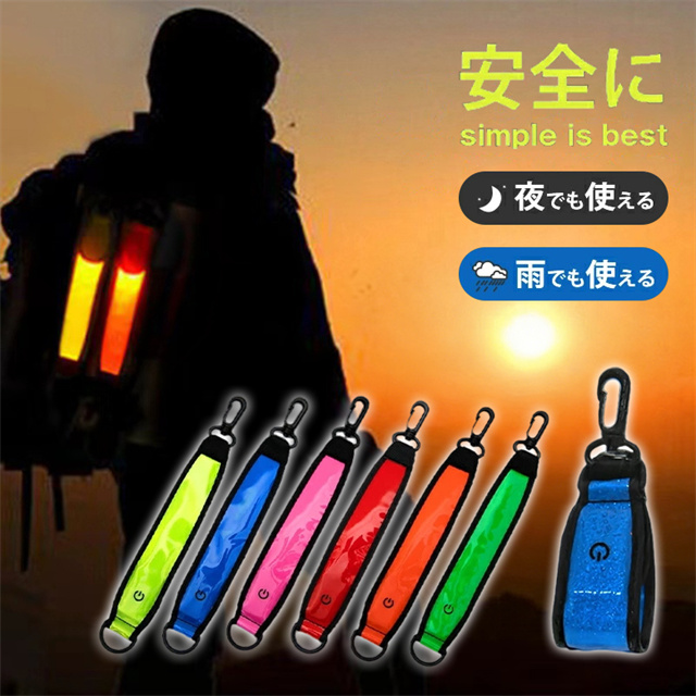 充電式 光るストラップ LEDナイトマーカー 自転車ライト テールライト セーフティライト キーホルダー付き リフレクター 反射材 タスキ ランドセル 夜間安全 交通安全マーカー 送料無料