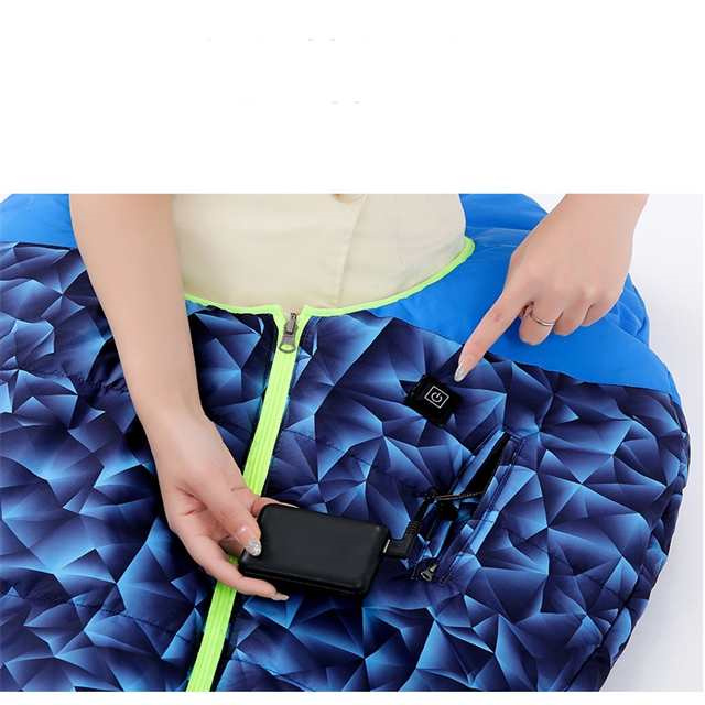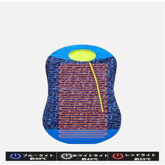 | 仕様 | ・製品サイズ(約):190*75cm ・収納サイズ(約):37*20*20cm ・製品重量(約):1.3kg ・表地:210T裂けにくい格子柄生地 ・裏地:高密度ポンジ生地 ・中綿:ダウンコットン ・快適温度:-15°C 〜 20°C ・カラー:ブルー / オレンジ ・セット内容:寝袋本体*1、収納袋*1 ・動作電圧:5V/2.0A USB給電 ※モバイルバッテリーは別売りです。寝る時加熱停止を防ぐため、10000mAh以上の大容量モバイルバッテリーをご用意ください。 |