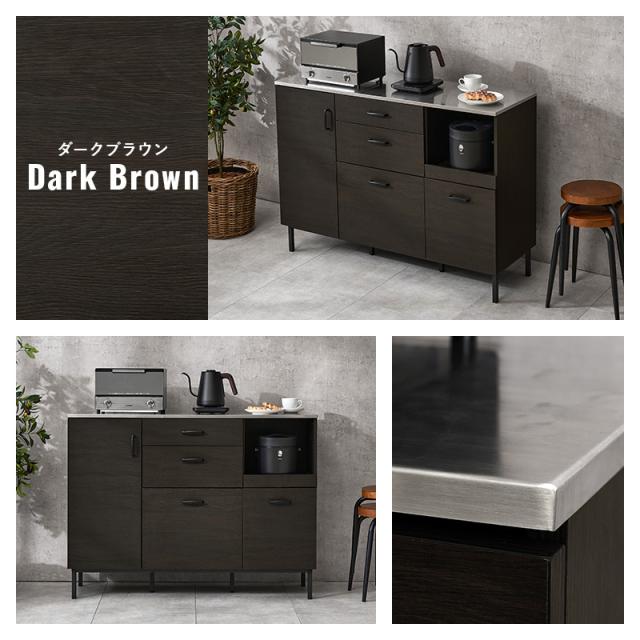 ■サイズ:(約)幅120×奥行42.5×高さ89.5cm■素材:主材:合成樹脂化粧パーティクルボード(メラミン樹脂)、天板:ステンレス、脚部:スチール