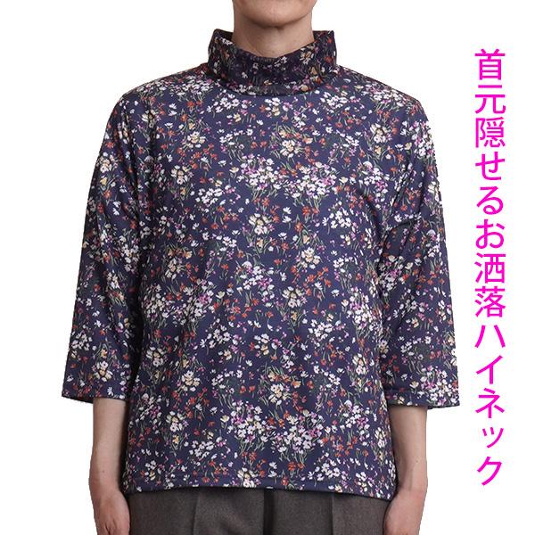 シニアファッション レディース 長袖 7分袖 Tシャツ 花柄 50代 60代 70代 80代 ゆったり 春夏 婦人服 高齢者 ハイネック タートル