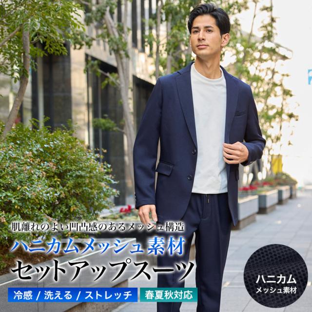 【冷感メッシュ素材・カジュアルセットアップスーツ】